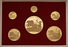 SEI MEDAGLIE COMMEMORATIVE IN ORO PER IL CENTENARIO DELL’UNITA’ D’ITALIA (1861-1961) IN ELEGANTE ASTUCCIO E CON CERTIFICATO DI GARANZIA DELLA ZECCA ITALIANA OPUS P. GIAMPAOLI