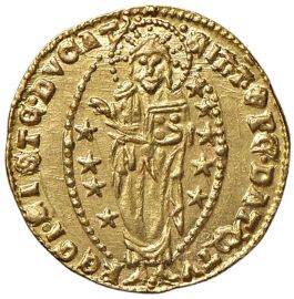 Au gr. 3,56 D/ San Marco porge il vessillo al Doge genuflesso R/ Il Redentore entro un’aureola ellittica stellata Mont. 115 Paol. 1 Fr. 1225