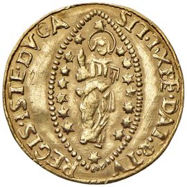 Au gr. 3,44 D/ San Marco porge il vessillo al Doge genuflesso R/ Il Redentore entro un’aureola ellittica stellata Mont. 2826 Paol. 1 Fr. 1408