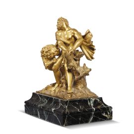 French, 18th century, Hercules and the Nemean Lion, gilt bronze on a green marme base, 29x27x14,5 cm (overall)