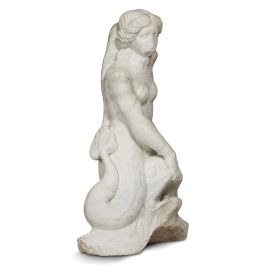 in marmo, raffigurante una figura femminile bicaudata che afferra la bocca di un mostro marino, cm 108x63x37