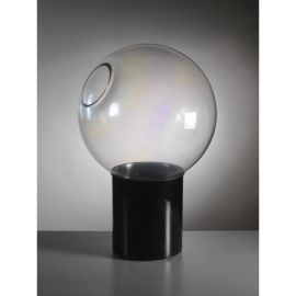 TABLE LAMP, BLACK ENAMELED METAL AND GLASS
