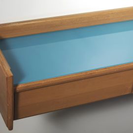 HANGING DRAWER AND MIRROR, WOOD AND GLASS