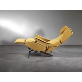 «OSCAR» RECLINING ARMCHAIR, METAL AND WOODEN STRUCTURE, YELLOW FABRIC UPHOLSTERY
