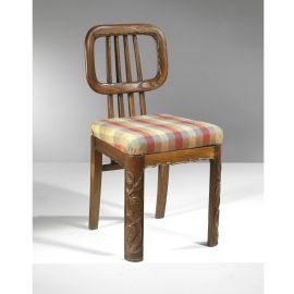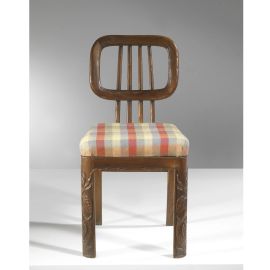 FOUR CHAIRS, WOODEN STRUCTURE, CHECKED FABRIC UPHOLSTERY