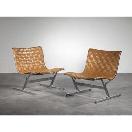 A PAIR OF STEEL AND LEATHER «PLR1» ARMCHAIRS