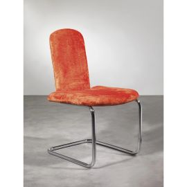 FOUR «BRERA» CHAIRS, METAL STRUCTURE, RED FABRIC UPHOLSTERY