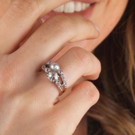 ANELLO A DOPPIA FASCIA CON PERLA E DIAMANTI
