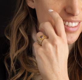 ANELLO A FASCIA CON RUBINO E DIAMANTI