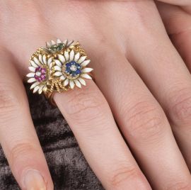FLORAL BOUQUET-SHAPED MULTI GEM RING IN 18KT YELLOW GOLD