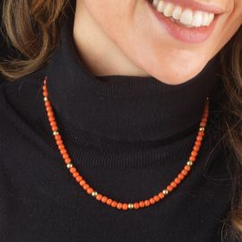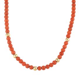 di cui una composta da una fila di sfere in corallo di mm 4 circa, fermatura e distanziali in oro giallo 18kt, punzone 750, lungh. cm 45, accompagnata da una seconda collana con sfere in corallo di mm 5 circa, fermatura e distanziali in oro giallo 18kt, punzone 750, lungh. cm 47, gr. 37 complessivi