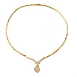 in oro giallo e bianco 18kt, con parte centrale a raffigurare il muso di un gatto impreziosito da diamanti taglio huit huit per ct 0.30 circa, lungh. cm 39, gr. 28
