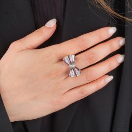 GRANDE ANELLO A FORMA DI FIOCCO CON RUBINI E DIAMANTI