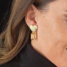 PAIO DI ORECCHINI A FORMA DI CUORI CON QUARZI CITRINI PENDENTI