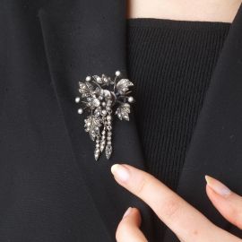 FLOWERING BRANCH-SHAPED DIAMOND BROOCH IN SILVER