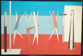 Le immagini dipinte da Salemme hanno colori brillanti, ma non trasmettono vivacità, i suoi spazi si collocano a metà tra realtà e fantasia, quasi come se fossimo all’interno di un universo metafisico. Le sue figure allungate, solitarie sono armoniose personificazioni geometriche, che rimandano al Dada di Ernst ma allo stesso tempo anche alle resilienti sculture di Alberto Giacometti e alla pittura di molti artisti odierni.