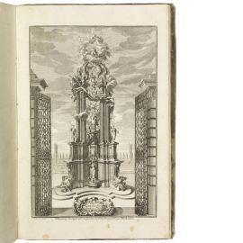 RARE SERIES OF ARCHITECTURAL ENGRAVINGS DEDICATED TO THE GERMAN BAROQUE, of which Paul Decker, engraver and master builder also known as Paulus Decker the Elder (1677-1713) was one of the major exponents. First work contains 8 (of 32) plates. The second work in three parts is a magnificent gallery of 60 plates dedicated to the decoration of private buildings, palaces, churches and civic structures; it contains detailed engravings of design elements for windows, doors, fireplaces, columns, arches, ceiling mouldings, pillars, iron gates, niches, altars, tombs, stairs, floor plans, facades, elevations and floor plans. A splendid architectural frontispiece introduces each the three parts. Detailed description and additional images upon request.