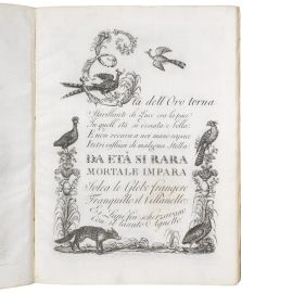 (Calligrafia - Ornitologia - Illustrati 700) GIARRÈ, Gaetano. Alfabeto di lettere iniziali adorno di animali e proseguito da vaga serie di caratteri. In Firenze, appo Giacomo Moro, 1797.