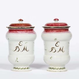 COPPIA DI ALBARELLI CON COPERCHIO, BOLOGNA, MANIFATTURA FINK, 1768-1789