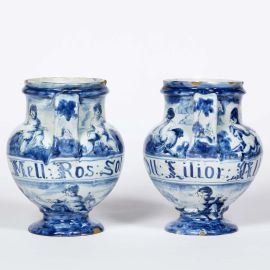COPPIA DI ORCIOLI, SAVONA, MANIFATTURA GROSSO O CHIODO, PRIMA METÀ SECOLO XVIII