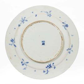 secondo il decoro noto come “a tappezzeria” con cespi di piante e rocce, centrato da una divinità dell’Olimpo assisa su un carro. Marca sul retro; diam. cm 44,2