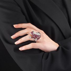 FROG-SHAPED RUBY AND DIAMOND RING IN 18KT WHITE GOLD