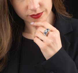 DIAMOND AND SAPPHIRE RING IN 18KT TWO TONE GOLD