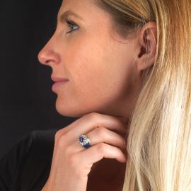 SAPPHIRE AND DIAMOND ENAMELED RING IN 18KT YELLOW GOLD