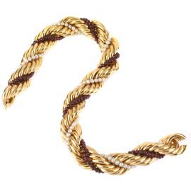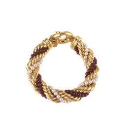 TORCHON PEARL AND GARNET DEMI PARURE IN 18KT YELLOW GOLD
