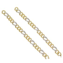 in oro giallo e bianco 18kt, scomponibile in due bracciali a catena (difetti) con maglie in oro bianco impreziosite da diamanti taglio brillante per ct 1.40 circa, lungh. bracciale cm 18, lungh. collana cm 35, gr. 76