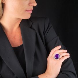 GRANDE ANELLO MOTIVO FLOREALE CON AMETISTA E DIAMANTI