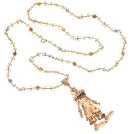 LONG NECKLACE WITH A "CLOWN" PENDANT IN 9KT AND 18KT GOLD