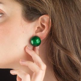 in oro giallo e bianco 18kt, decorati in smalto verde, punzone 18kt, dim. cm 2x2x1,5 circa, chiusura a clip con perno, gr. 20 circa complessivi
