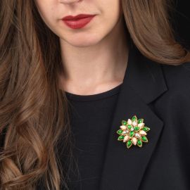 FLORAL BROOCH IN 18KT TWO TONE GOLD AND ENAMELS