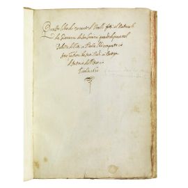 A penna sul frontespizio "Questo libro di 30 carte d'Uccelli fatti al naturale / da Giovanni da San Giovanni quando dipinse nel / Palazzo de Pitti in Firenze l'ho comprato io / Atto Fabroni da suoi allievi in Bottega d'Antonio dell'Orso in / Firenze 1640"