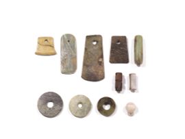A GROUP OF ELEVEN JADES, CHINA, NEOLITHIC PERIOD, HAN DYNASTY