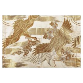 in seta dorata ricamato con decoro Gru e fiori Mei.