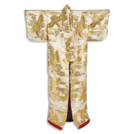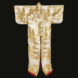 日本 江户 1615至1860 缎練金色地金银绣云鹤梅图 打掛うちかけ和服
