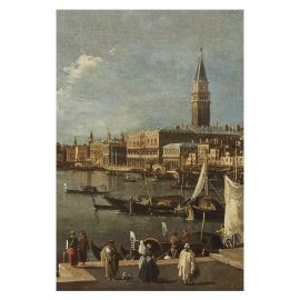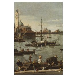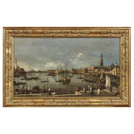 Di conseguenza, non è possibile stabilire quale dei due possa identificarsi con il dipinto appartenuto a Francesco Algarotti e così descritto in una lista dei suoi beni successiva alla morte nel 1764, altro elemento che contribuisce a circoscrivere l’esecuzione della nostra veduta in un breve giro di anni: “Vue de Venise dans sa plus belle situation. Elle est prise des Fours publics sur la rive des Esclavons, d’où l’on découvre l’Isle de Saint George, le Canal de la Giudecca, la Douanne de la mer avec una partie du Grand Canal jusqu’à la Charité; les greniers publics, la Monnoye, la Bibliothèque, la petite place de Saint Marc, le Palais Ducal, les Prisons, et partie de la Rive des Esclavons jusqu’à la Piété; avec des vaisseaux, des barques et des gondoles”.
