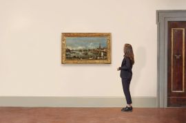 Al centro, la Punta della Dogana con la chiesa della Salute a sinistra del Canal Grande; sul lato opposto, una serie di palazzi conduce alla piazzetta San Marco, ove è possibile riconoscere, illuminato dal sole, l’angolo della Libreria sansoviniana.
