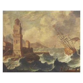 PAESAGGIO PORTUALI CON FIGURE E BARCHE
