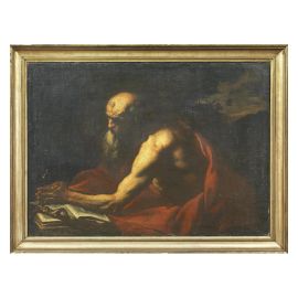 Il nostro dipinto può essere messo in relazione con alcune opere eseguite da artisti che hanno lavorato nella bottega di Ribera; tra queste possiamo citare il San Girolamo eseguito da Hendrick van Somer (1607-1656), ubicato presso il Pio Monte della Misericordia a Napoli e il dipinto raffigurante Vecchio con cartiglio databile intorno al 1650 proveniente dalla collezione della Fondazione de Vito attribuito al Maestro dell'Annuncio ai Pastori o a Juan Do. Un ulteriore confronto può essere fatto con la tela conservata al Museo di Capodimonte, attribuita al Maestro Dell'annuncio ai pastori Avaro Ritratto di Uomo, eseguito tra il 1635 e il 1650.