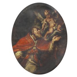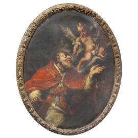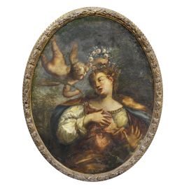coppia di dipinti d olio su tela ovali, cm 145x112