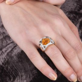 CITRINE QUARTZ AND DIAMOND BAND RING IN 18KT TWO TONE GOLD