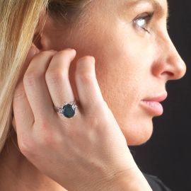 BLACK OPAL AND DIAMOND RING IN 18KT WHITE GOLD