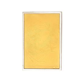 moneta in oro, diam. mm 19, accompagnata da una piastrina composta da base in argento e lastra in oro 24kt incisa e raffigurante un profilo femminile, firmata "Pietro Annigoni", punzoni 925, 999,8 e del fabbricante, dim. cm 4,5x6,5 circa, gr. 63 complessivi circa