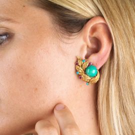 PAIO DI ORECCHINI A TRALCI CON TURCHESI E RUBINI