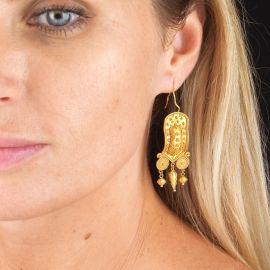 ARCHAEOLOGICAL STYLE DROP EARRINGS IN 18KT YELLOW GOLD