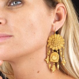 ARCHAEOLOGICAL STYLE CHANDELIER EARRINGS IN 18KT YELLOW GOLD
