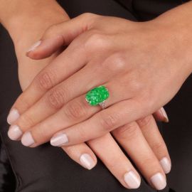 JADEITE JADE AND DIAMOND RING IN PLATINUM
